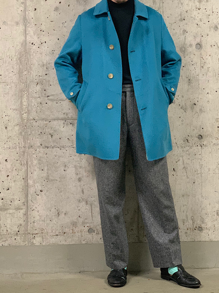 【着用レビュー 】モノトーンの上にトレンドカラーであるターコイズのコートを差し色として使用しポップでありながら上品なスタイルを意識しました。