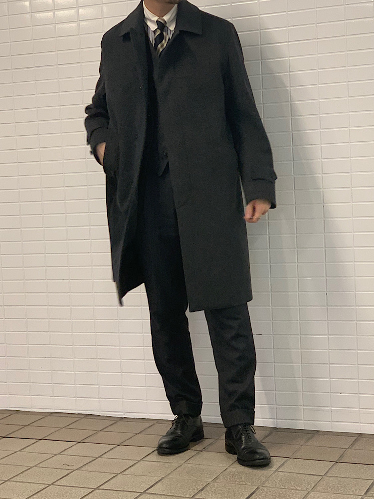 【着用レビュー 】全体的にダークトーンでまとめ、都会的なモノトーンスタイルをイメージしました。