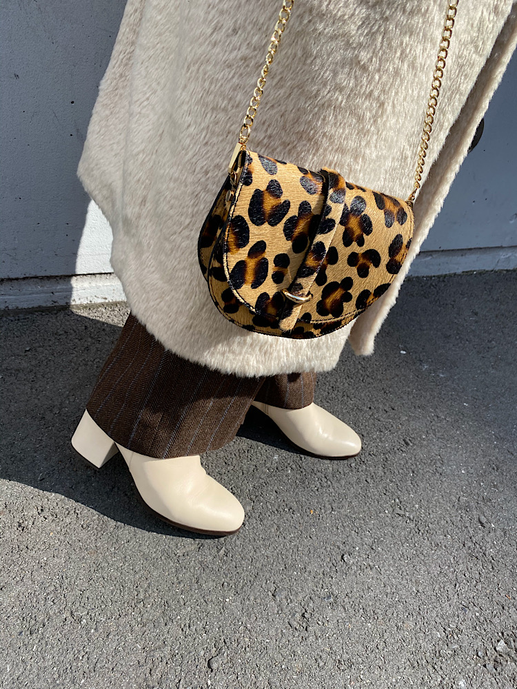 オレンジニットがアクセント。ファーアウターのキレイ目スタイル。