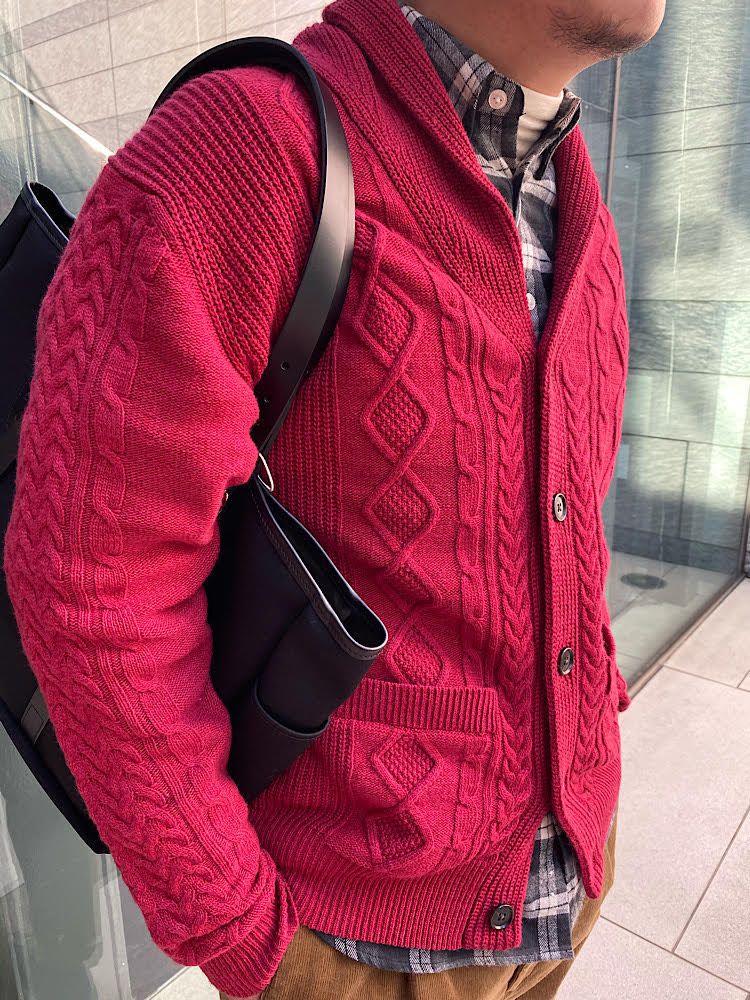 着用アイテム:ショールカーディガン 身長:174cm / 普段サイズ:L / 着用サイズ:L サイズ感:適度なゆとりがある為インナーにも着こめる 素材感:カシミヤを混紡させて作っている為肌触りがよい 着心地:ふわっとして軽さもる。