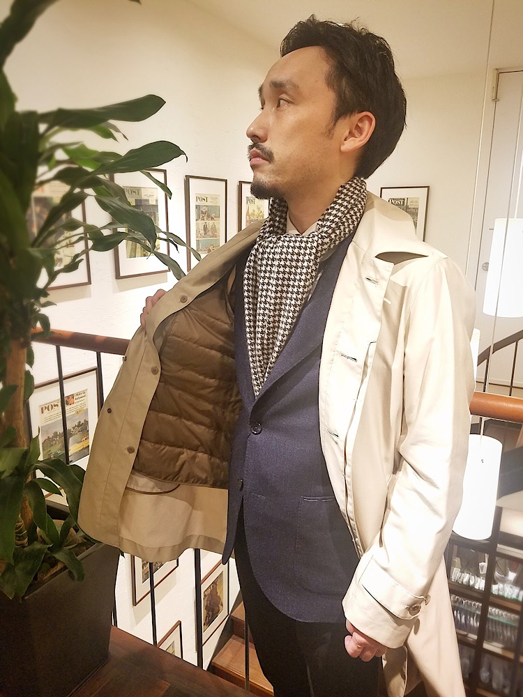 素材感:撥水機能が特徴のコットン/ナイロン素材。ダウンライナーが付属しているので長いシーズンで着まわせる。