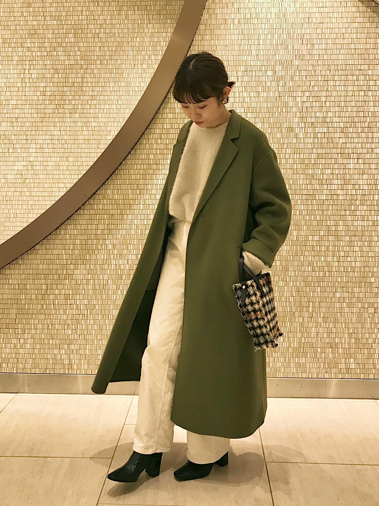 ゆったりとしたシルエットのコートなので、中を白系でまとめてスッキリとした印象になるように合わせました!