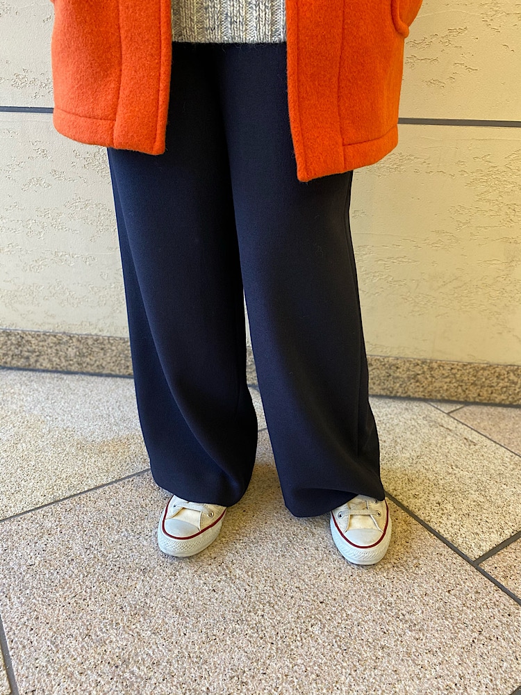 着 用アイテム:723-15-0007 WARM AMUNZEN EASY-PT 身長:162cm /普段サイズS orM /着用サイズ:36 着心地の柔らかなパンツです。 程よいワイドのシルエットがかわいいパンツです。