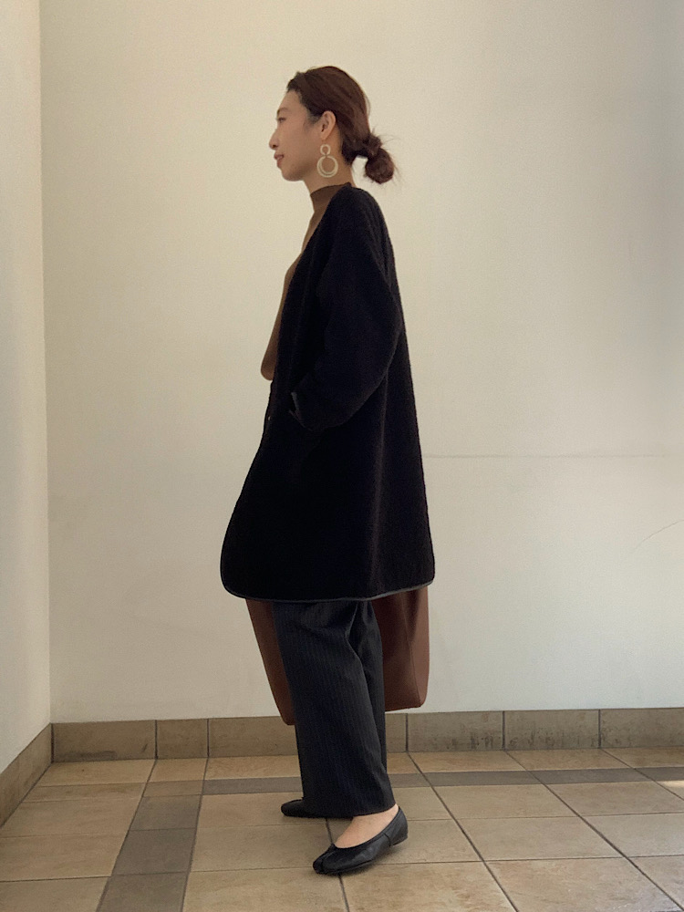 黒のボアコートは、カジュアルすぎない印象に。 着丈も長すぎず、ワイドパンツやスカートとも合わせて頂きやすいです。