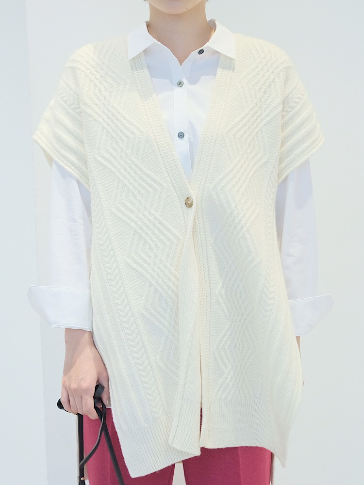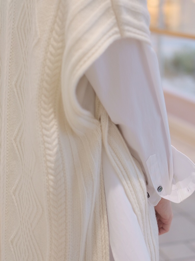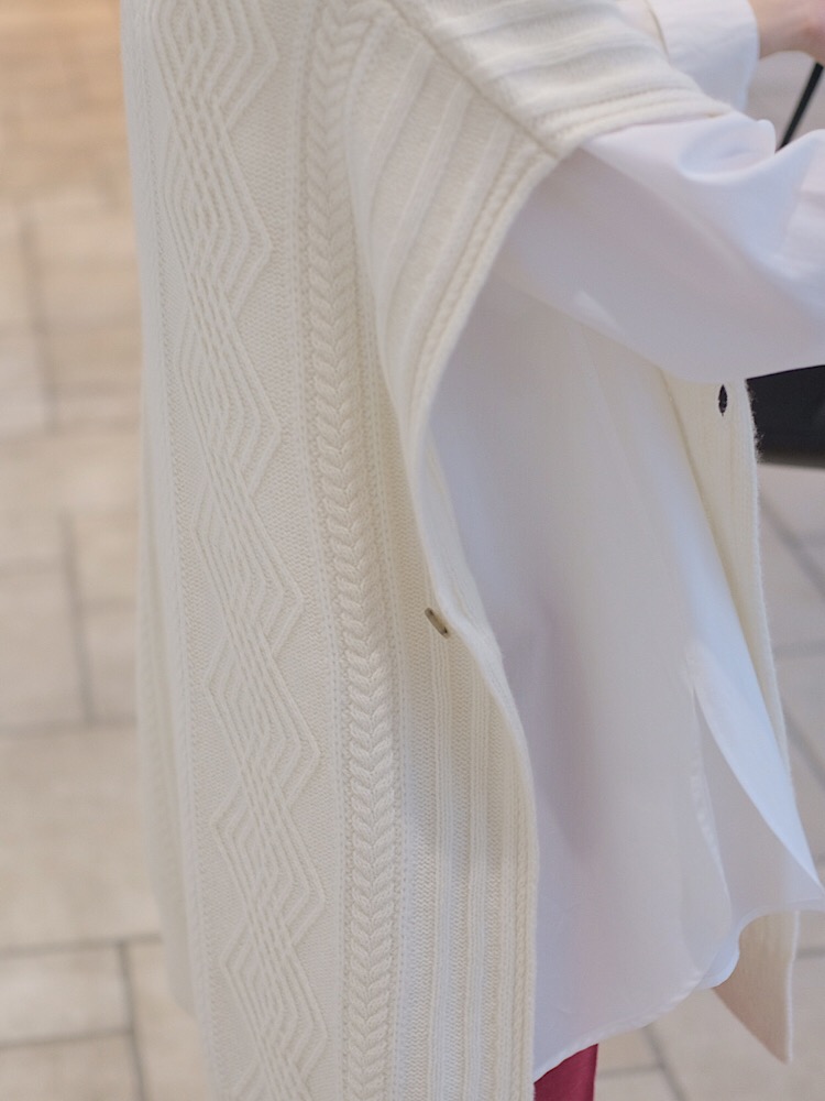 素材感・着心地:中肉でアウターを着ていただいても響きにくい。サイドのボタンを外して着ていただく等、色々な着方が出来る。