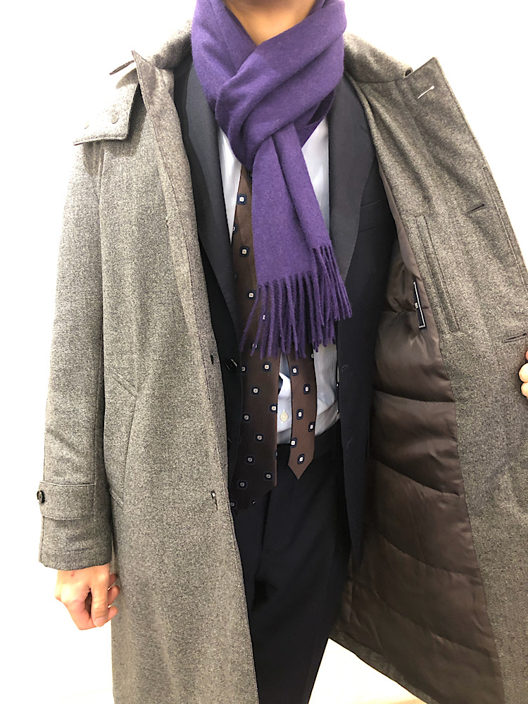 暖かくて軽いダウンコートを主役にした冬のコーディネートです
