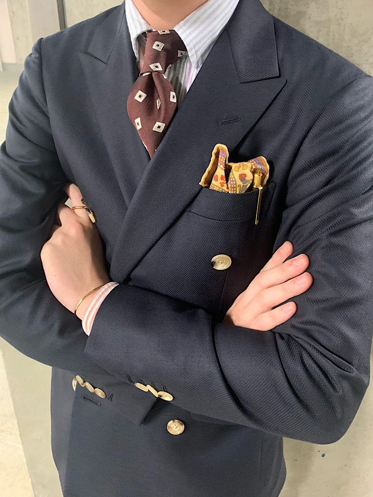 サイズ感: 細身でスッキリしているがジャケットの上からでも着用可能な程度のゆとりはある。