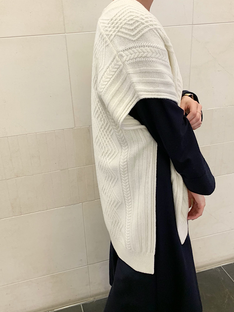 着心地:ボタンを外してストールのように巻くこともできます。オーバーサイズでサッと羽織れ、スタイリングのポイントになります。