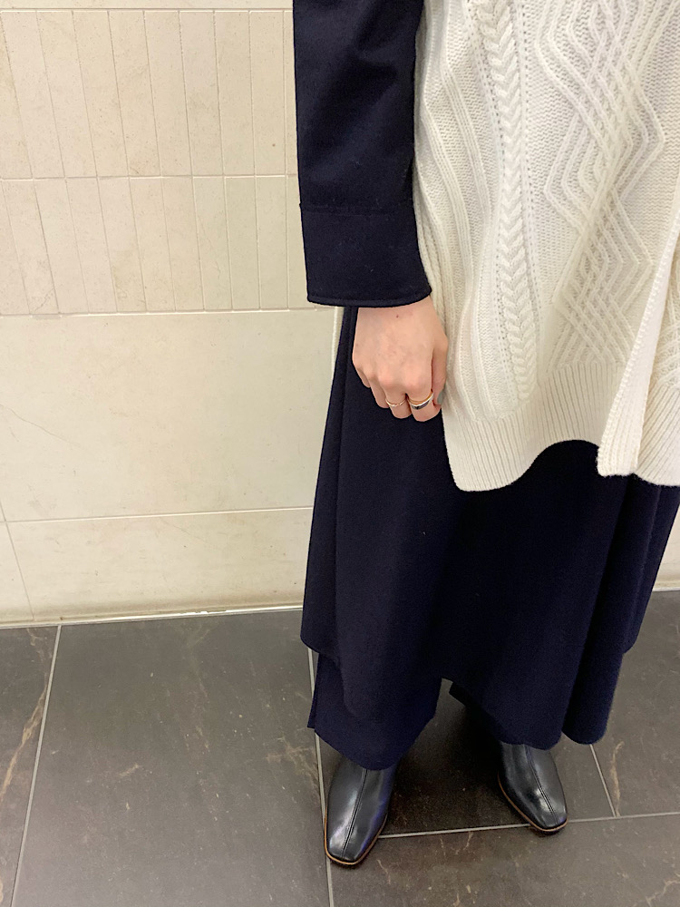 着心地:キレイなIラインで、大人っぽく着られるシルエットです。