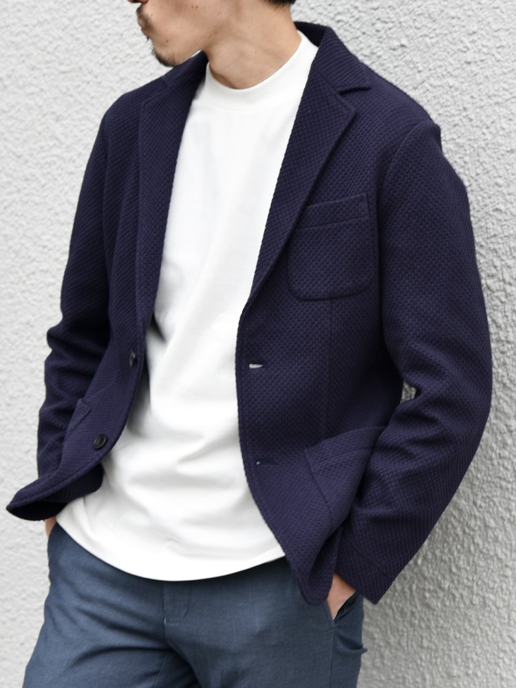 素材感:やや光沢感のあるキレイ目な素材感、防シワ効果あり