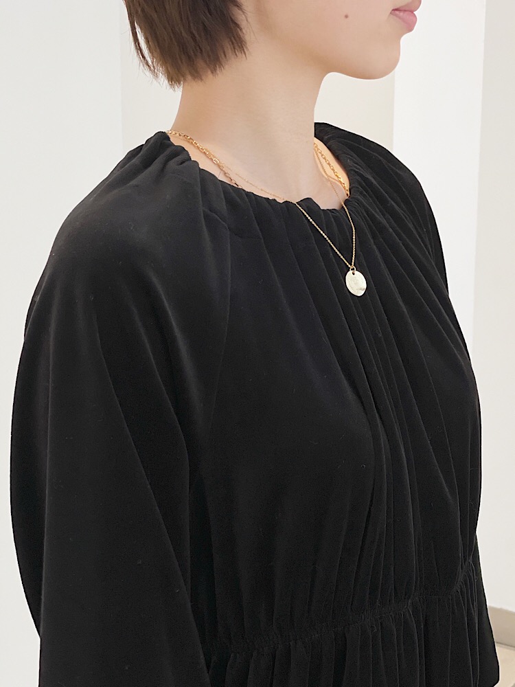 素材感・着心地:身体のラインが出にくい肉感で着心地がとても良いです。袖回りにゴムが入っている為、腕まくりした時の袖のボリューム感が可愛いです。