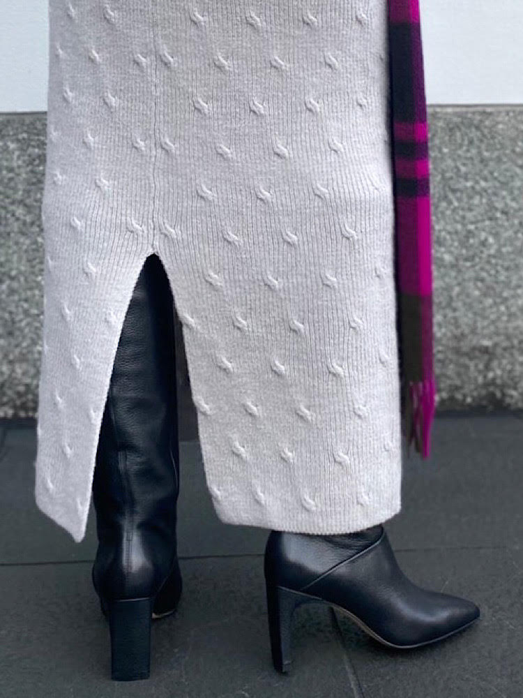 素材感・着心地:ツルッとしたウールで全くチクチクしません。
