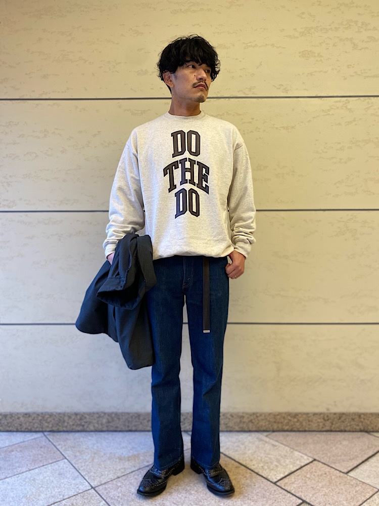 ロゴスウェット×デニムでカジュアルにコーディネートにしました。