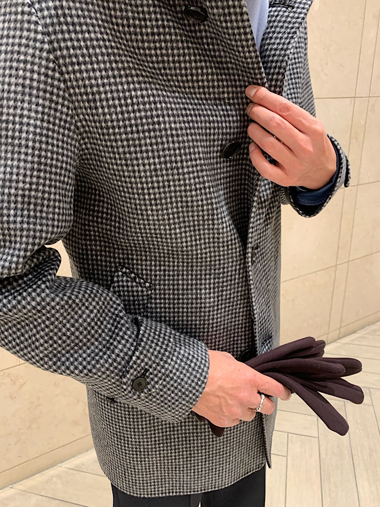【着用レビュー 】 着用アイテム:コート 身長:174cm / 普段サイズ:L/ 着用サイズ:M サイズ感:すっきりとしたサイズ感。 素材感:スーパー160sウールの先染め生地を使用したダブルフェイスの生地。 着心地:柔らかく軽い着心地。
