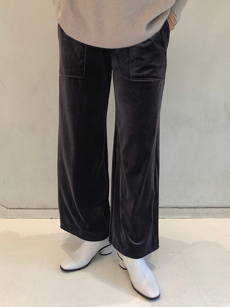 素材感:ベロア調で絶妙な艶感があり、きれいめアイテムにも合わせやすい。ポリなのでシワを気にせず履ける。