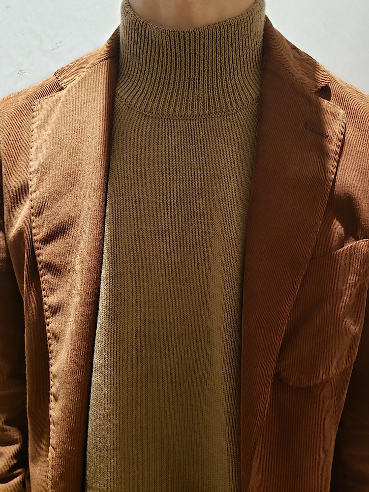 【着用レビュー 】<br> 着用アイテム:ニット<br> 身長:177cm / 普段サイズ:L/ 着用サイズ:52 <br> サイズ感:横に細いシルエット。<br> 素材感:少し荒めのWOOL素材。<br> 着心地:サラッとしてゴワゴワしない。
