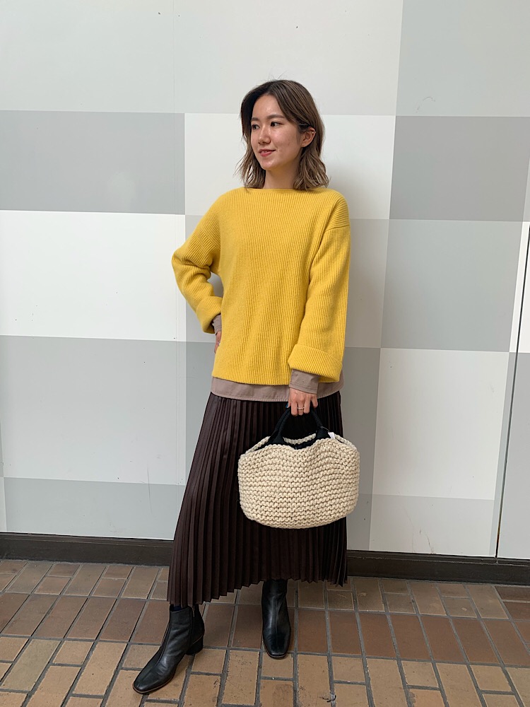 【着用レビュー】 着用アイテム:ニット 身長:160p/普段サイズ:36/着用サイズ:ONE SIZE サイズ感:ゆったりした身幅でレイヤードしやすいサイズ感 素材感・着心地:アンゴラ混で柔らかく、チクチクしにくい着心地です。