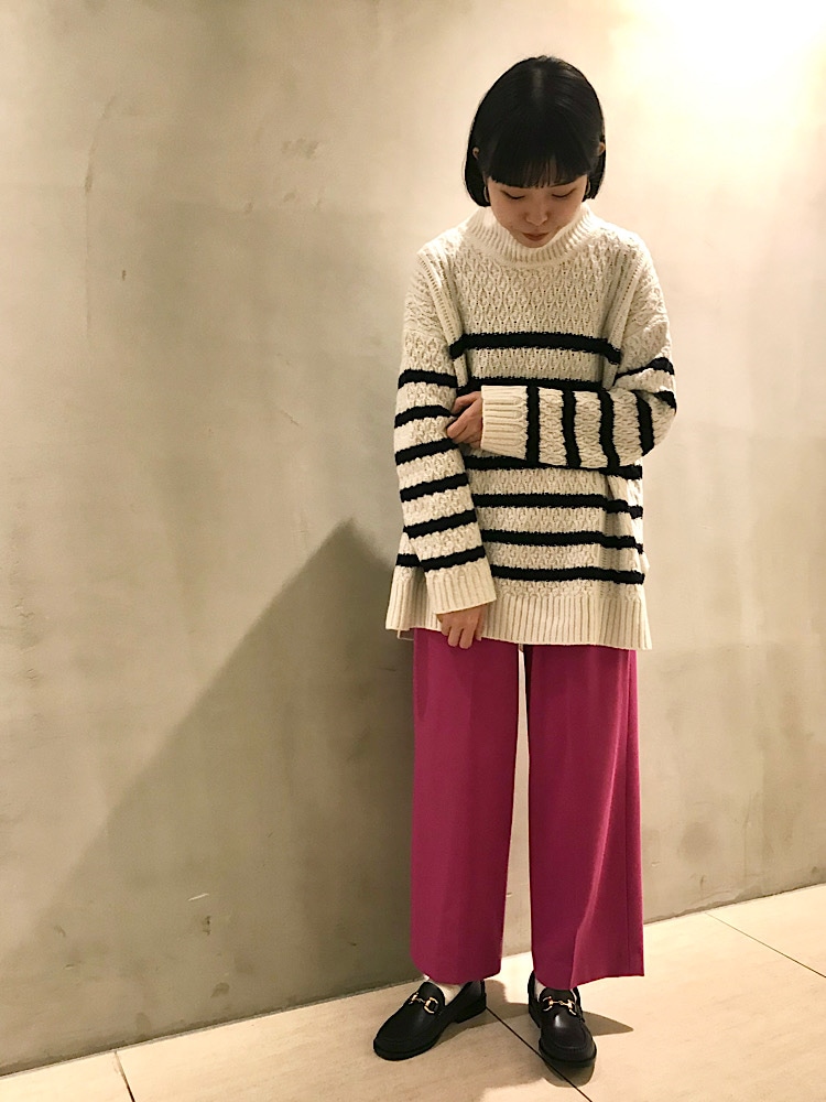 サイズ感:少しゆったりとしたサイズ感なのでボリュームのあるニットも合わせやすいです。