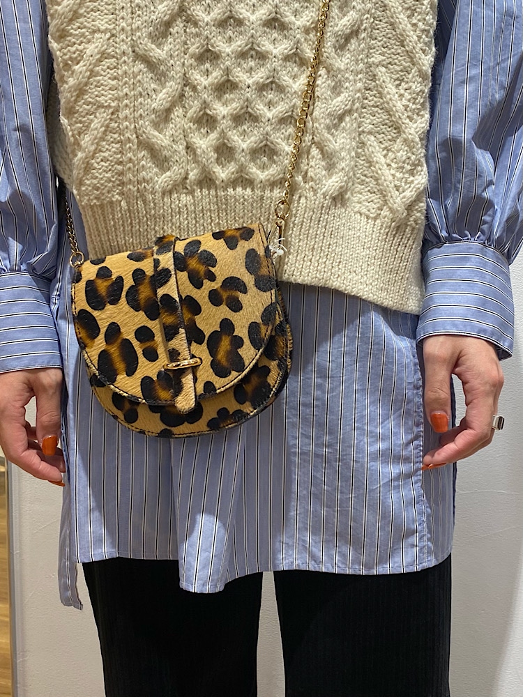 レオパードがアクセントのカジュアルスタイル。