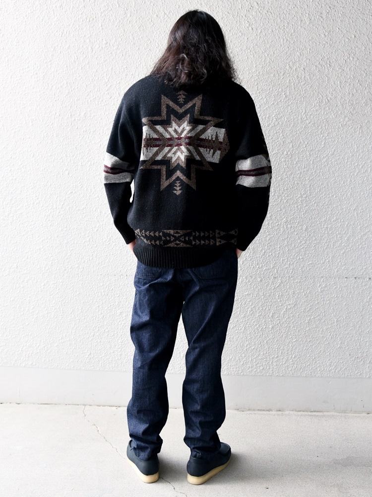 着心地:生地感がしっかりしているのでトップスで着ても安心。PENDLETONの伝統的な編み柄PLAIN STARが背中にジャガード編みで施されているので、是非商品ページでチェックしてみてください。