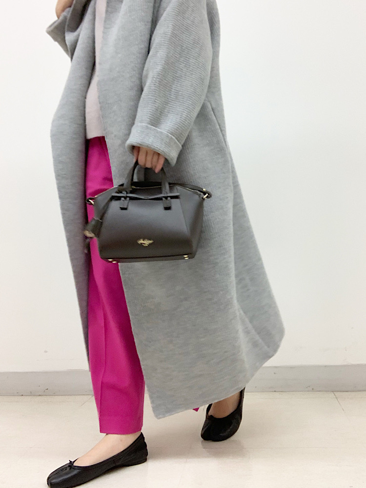 身長:170cm / 普段サイズ:M 着用アイテム:ニット 着用サイズ:ONE SIZE サイズ感:身幅はゆったりしており、着丈は少し長めです。 素材感・着心地:ふんわりしたアンゴラ混の素材は、肌触り柔らかく、軽いです。 着用アイテム:パンツ 着用サイズ:38 サイズ感:股上が深く、腰回り、ヒップは程よいゆとりがあります。 素材感・着心地:起毛していて温かみがあります。