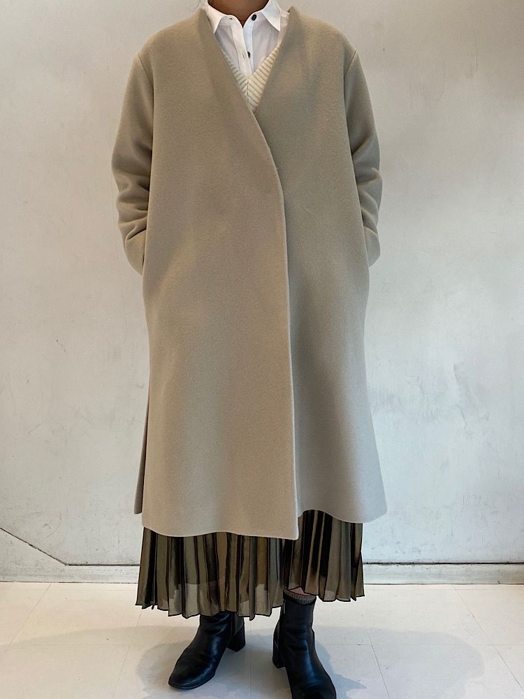 素材感:カシミヤ混ウールなので、丈長めでも軽く、なめらかな生地感。