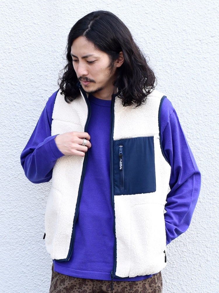 温かみのあるボアフリース素材に防風性をプラスした新型フリースベスト