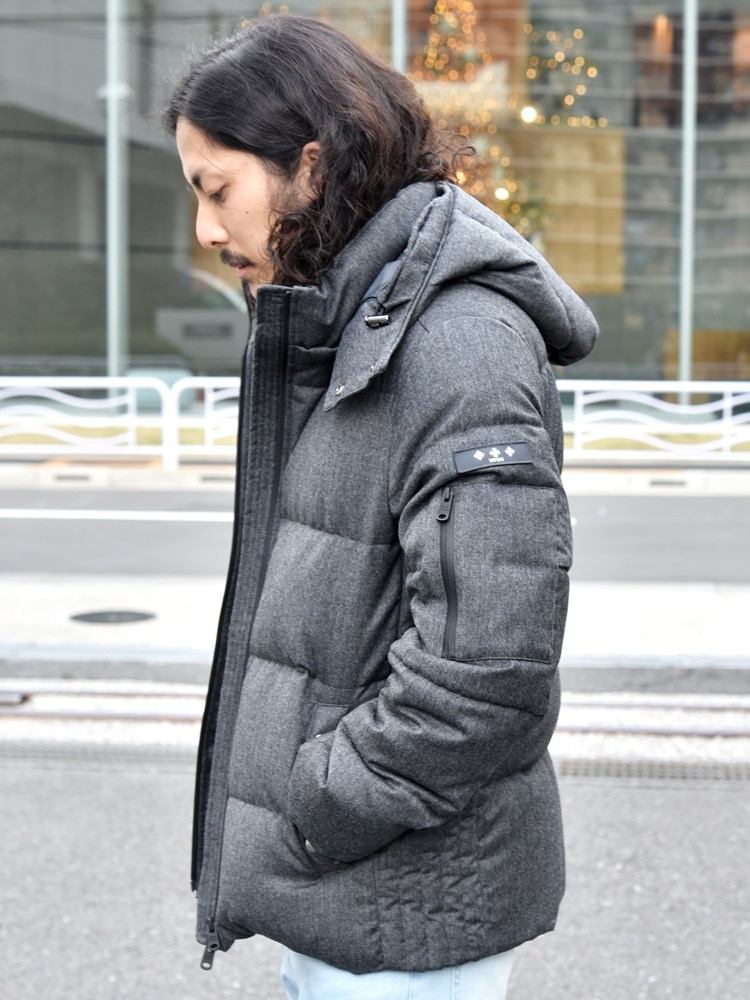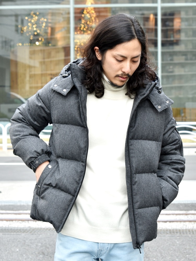 素材感:表地はウール100%で別注し、より幅広いスタイリングに対応。インサレーションはTATRASダウンの特徴である軽さを実現した"ダウンボール"を使用。