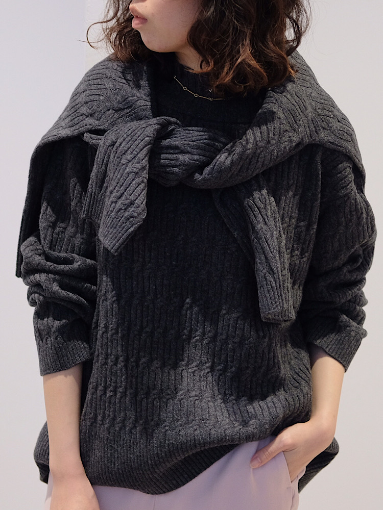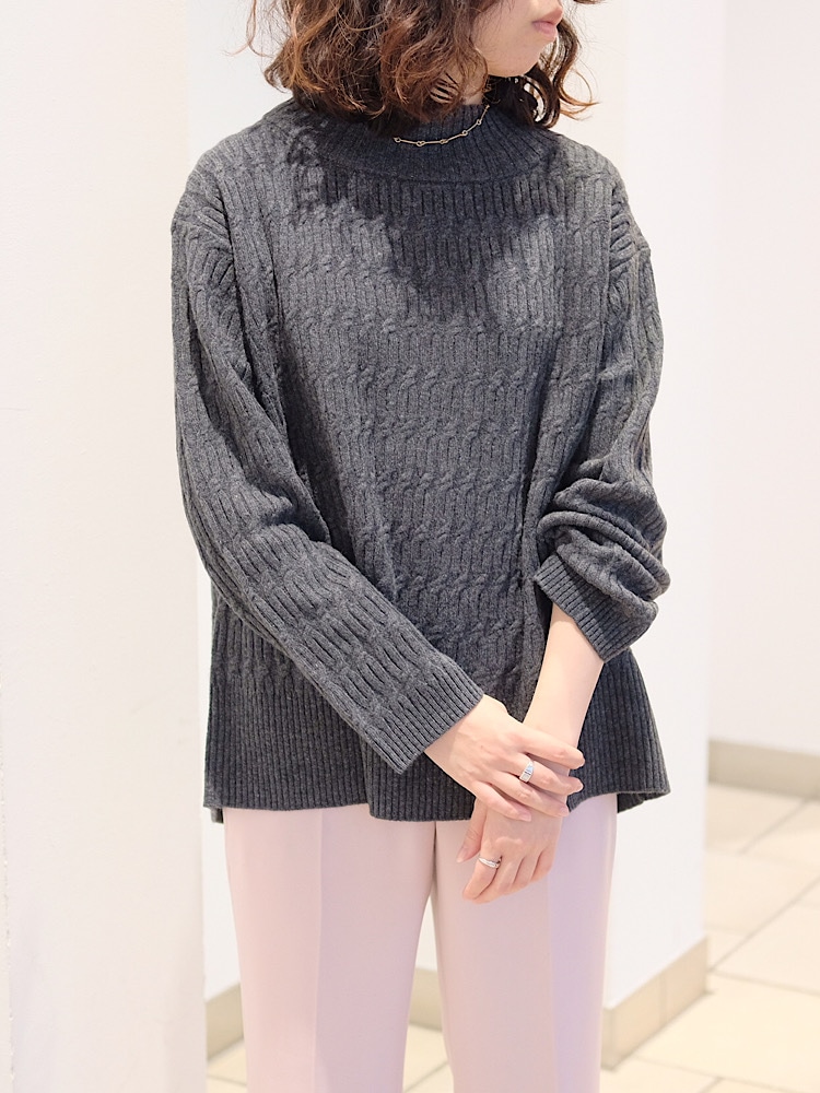 素材感・着心地:とても柔らかい素材のハミルトンニット。程よいつまりハイネックなので暖かく、生地も分厚すぎない肉感でアウターも入れやすいです。