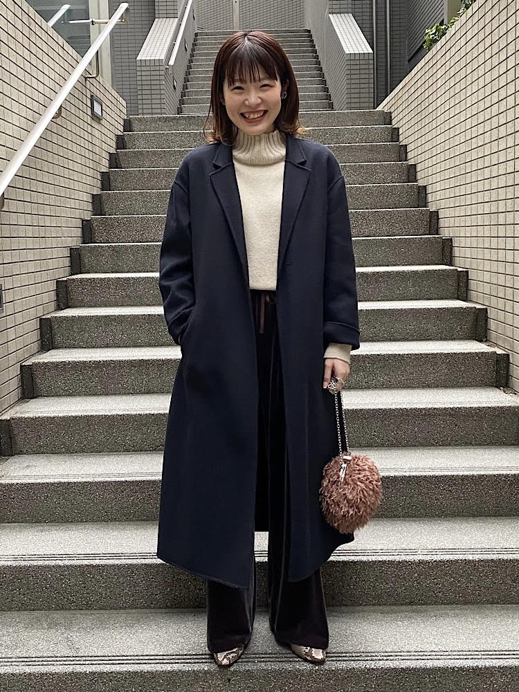裾にかけて丸みのあるシルエットなのでスカートとの相性もばっちりです。