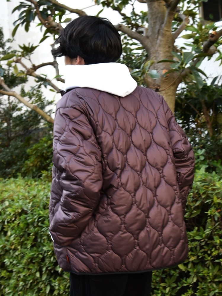中綿入りのキルトステッチ側のリバーシブルで使えるのでいろんなスタイリングが組めます。