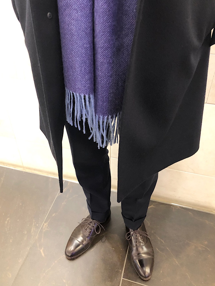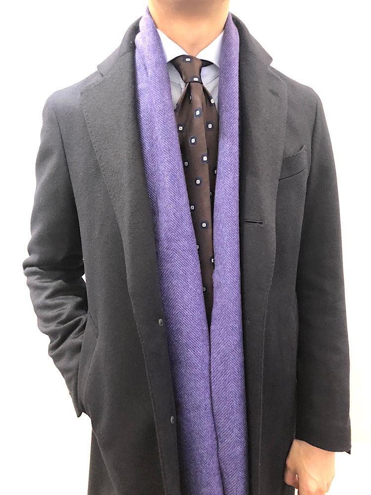 素材感:ウールとカシミヤの混紡素材なので、高級感のある光沢と柔らかさが魅力です