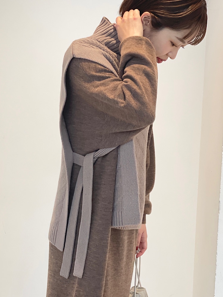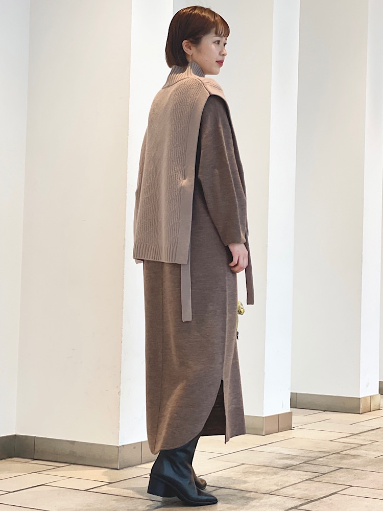 素材感・着心地:前後で着用可能です。ボートネックのシンプルなワンピースとして、またレイヤードを楽しめるスキッパーデザインのワンピースとしても着て頂けます。