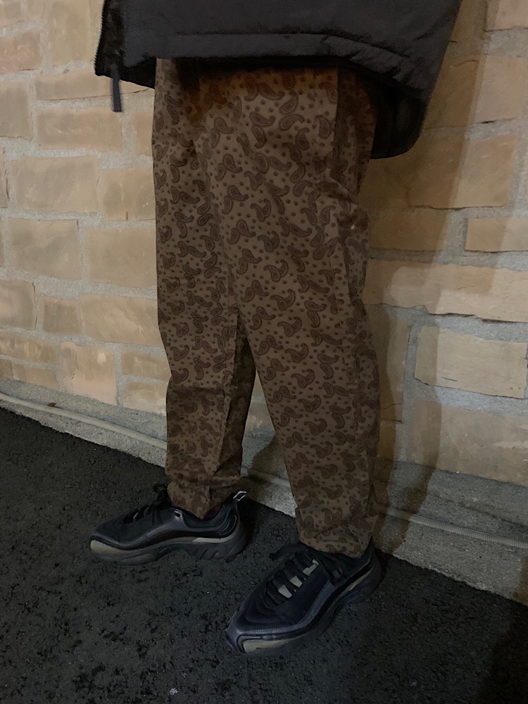 サイズ感:腰回りは緩く、腿から下にかけてテーパードがかかっています