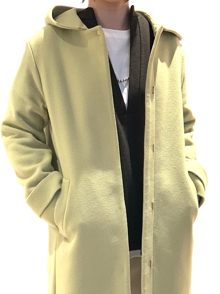 素材感・着心地:フードコート・ノーカラーコートとして着ていただける2WAYコート。
