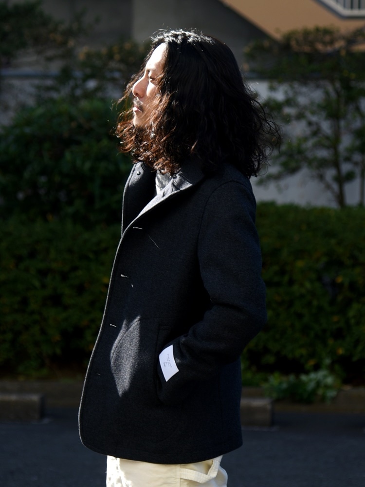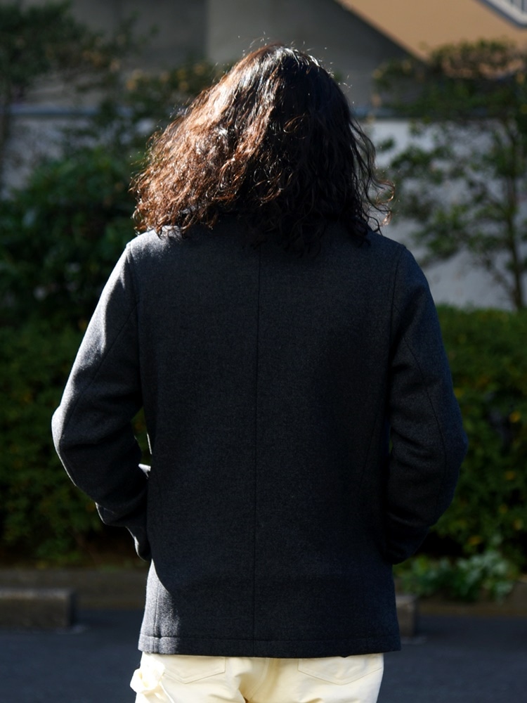 素材感:滑らかなツヤ感が特徴の上質なスーパー140'Sクラスのウール生地を贅沢に使用したこだわりのメルトン生地。