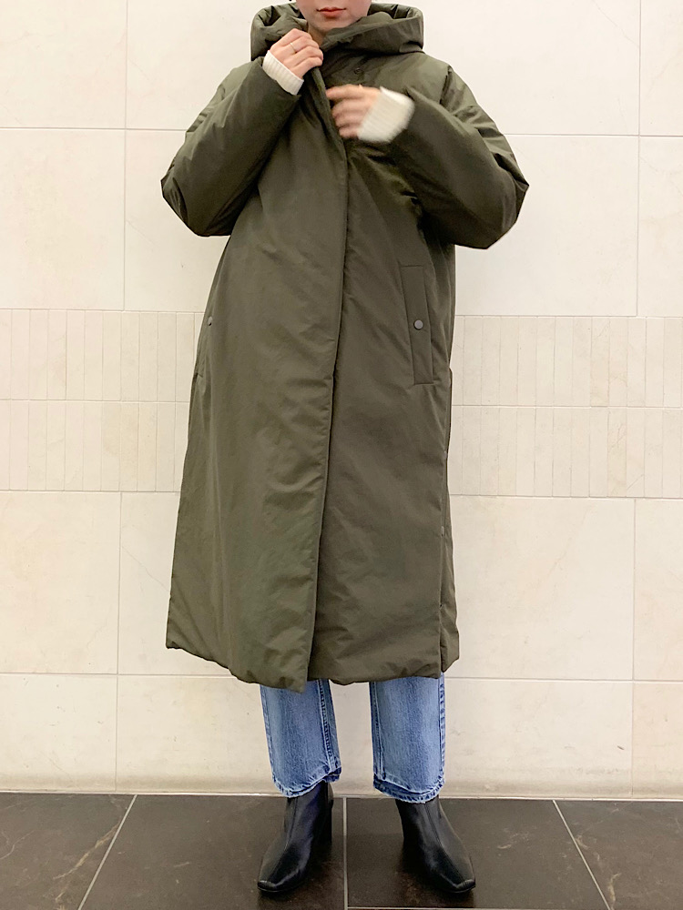 マットな質感と大きめのシルエットが可愛いパディングコート。フードやサイドスリットなど、シンプルなコーデに映えるデザインです。