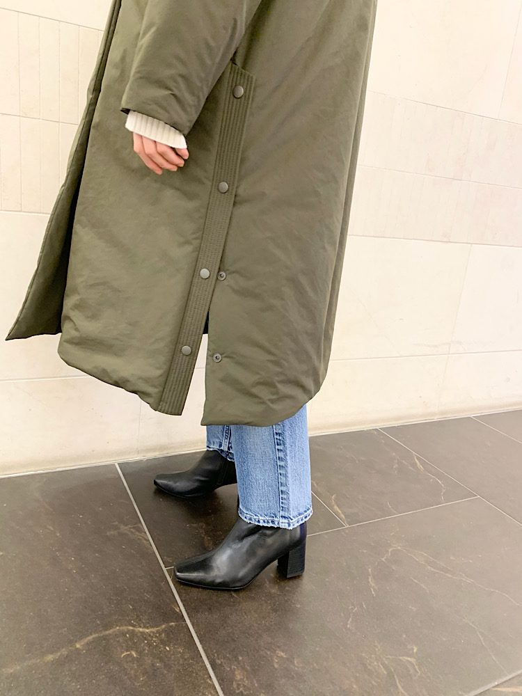 着心地:軽いのにとても暖かく、首元もボタンを閉めれば巻物いらずです。シンプルながら細かいデザインの効いた一着です。