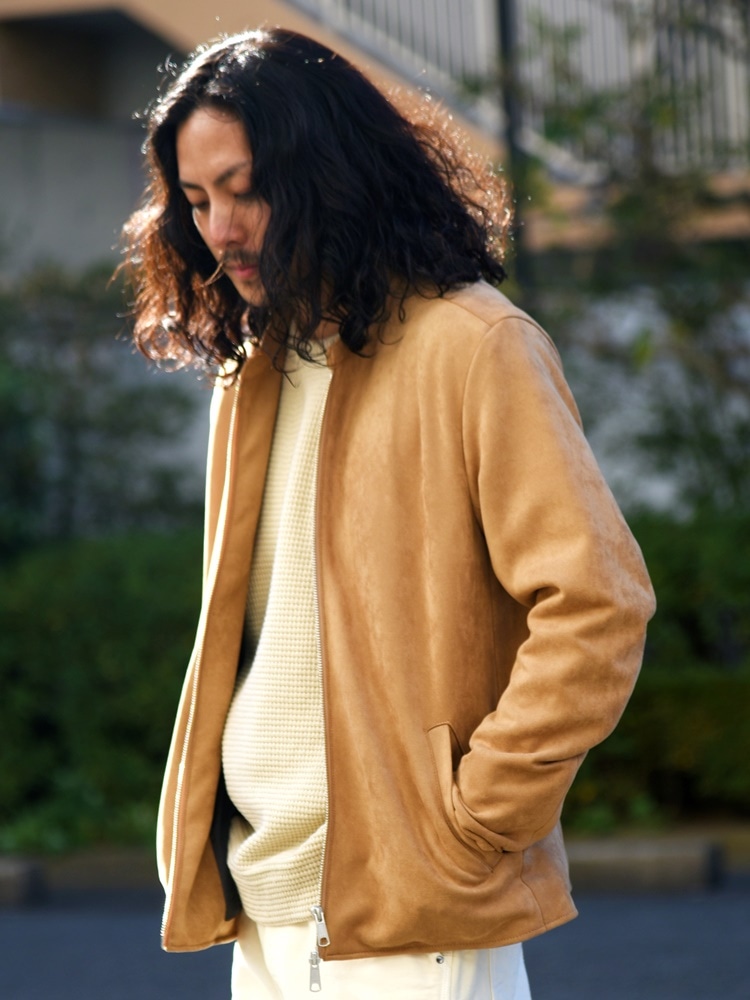 マシュマロのようなやわらかな肌触りが特徴のシングルライダースジャケット