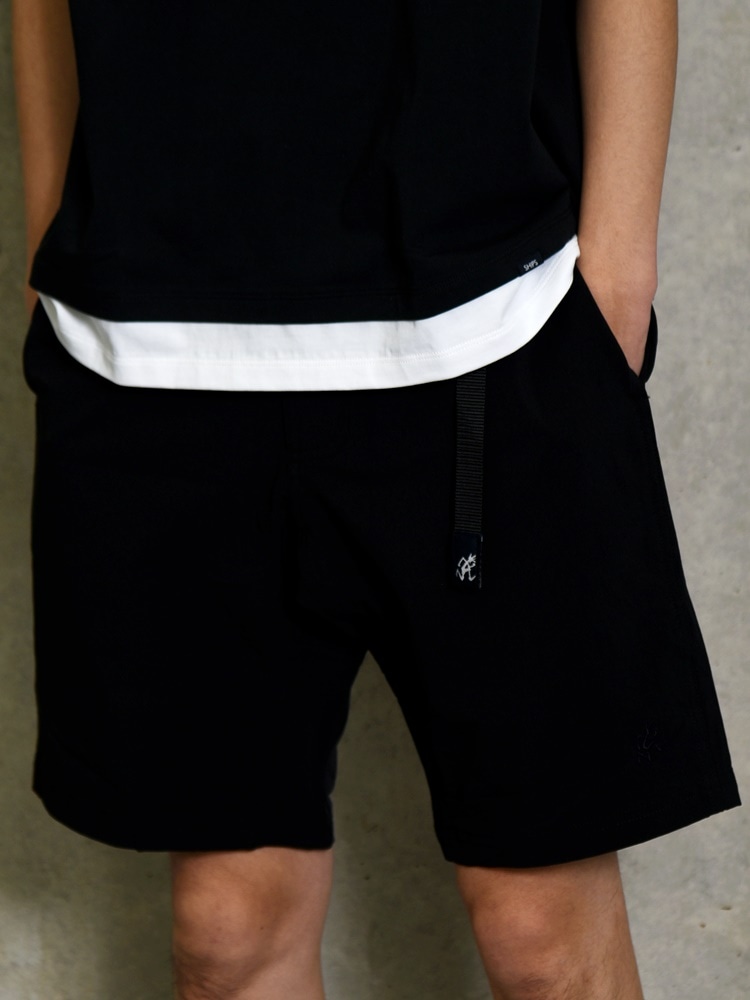 SHIPS別注でお届けするGRAMICCIの4WAYストレッチ仕様の軽快ショーツを合わせたコーディネート。