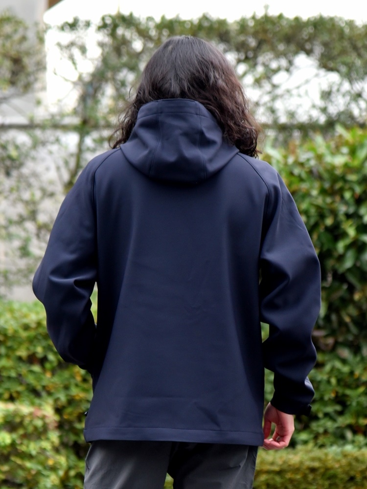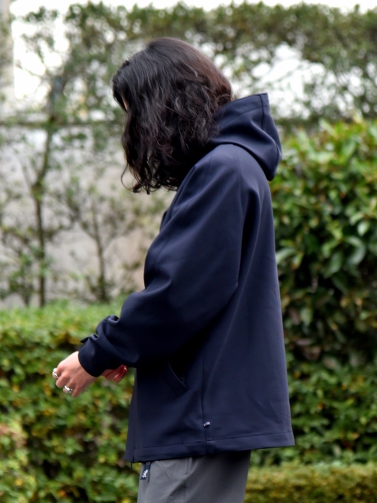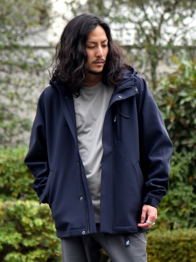 サイズ感:身幅、アームホールを広めに設定したややリラックスしたサイズ感にパターンを組み、インナーを着込みやすい仕様に仕上げており、長いシーズンで着用可能。