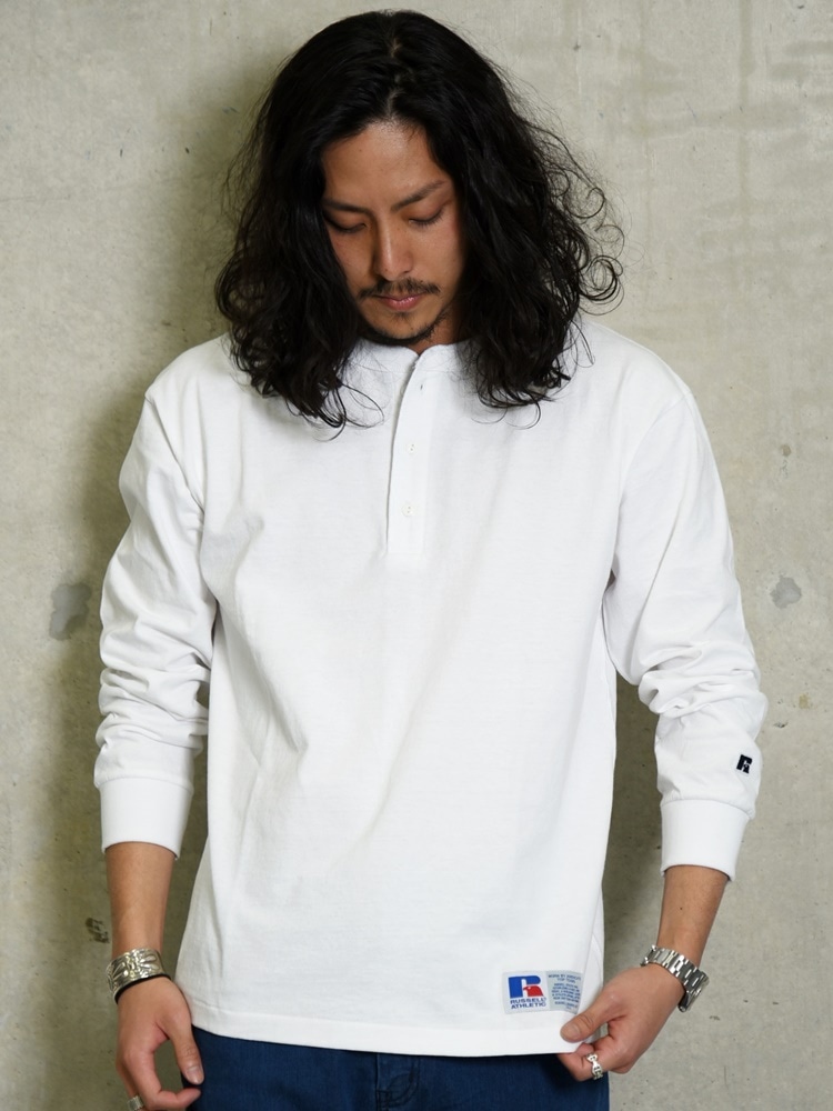 RUSSELL ATHLETIC×SHIPSのピグメント加工ヘンリーネックロングスリーブTシャツ