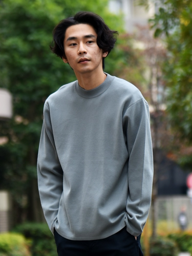 幅広いコーディネートと相性が良く、寒い時期にはアウターのインに、春は一枚でと長いシーズン着用可能です。