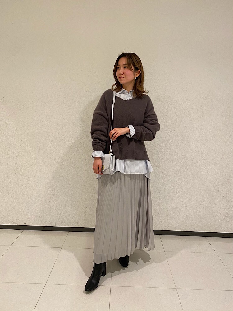 サイズ感:くるぶしが見えるぐらいの丈感。ブーツ合わせでバランス良く着られます。