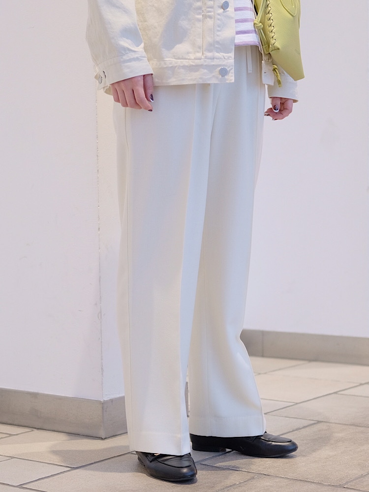 素材感・着心地:ご自宅で洗濯が出来るウール素材で、ピンタックが入っているので綺麗めにも着ていただけます。