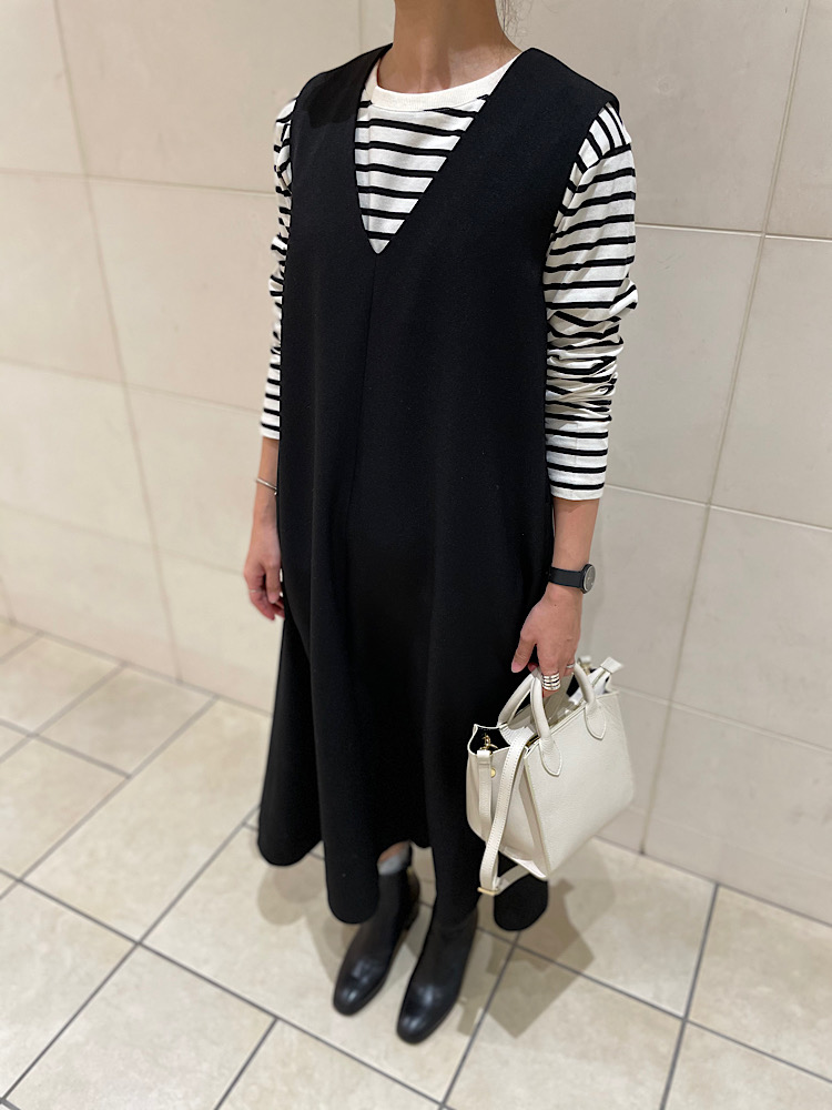 着用アイテム:724-55-0019 WL LIKE MAXI TENT OP 身長:162cm /普段サイズS orM /着用サイズ:フリー シンプルな深Vワンピースです。 シーズンも長く使えますので春先にも◎