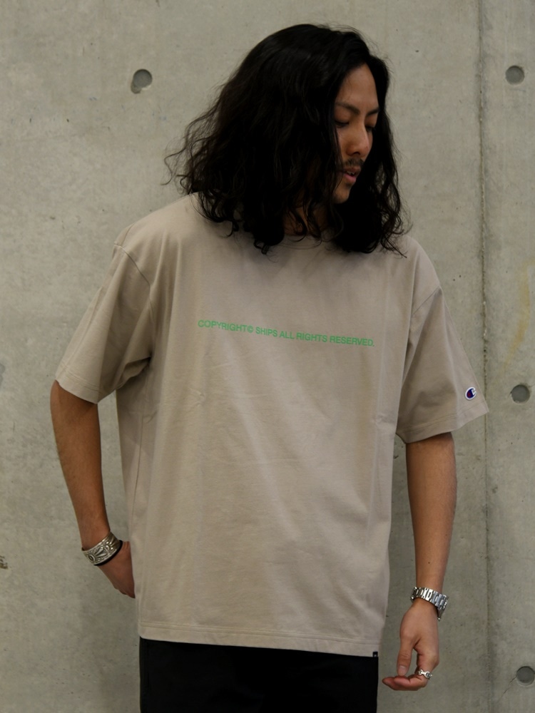 Champion×SHIPSの著作権表記を敢えてプリントに使用したユーモアのあるロゴTシャツ。