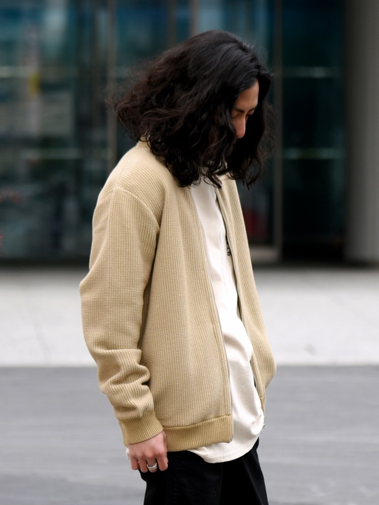 生地の立体感が秀逸なジップカーディガン