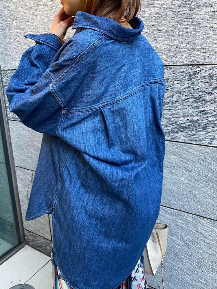 着心地:硬すぎない生地感で中にインナーも着やすいです。オーバーサイズでも襟抜きするととても女性らしく着ていただけます。