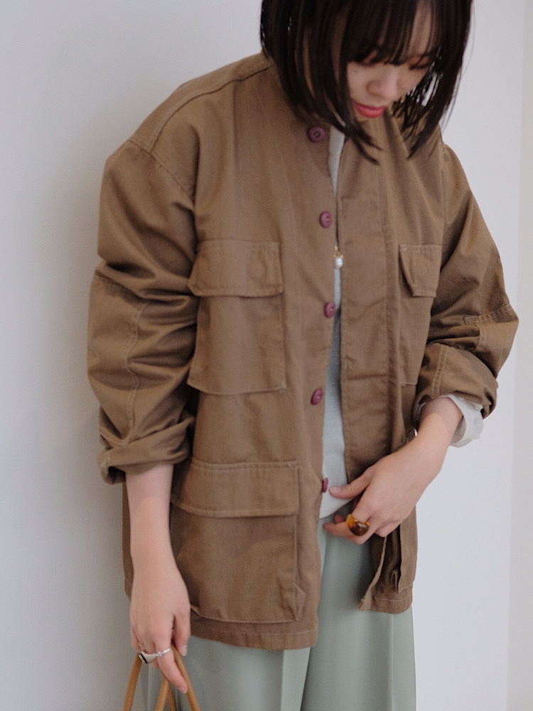 素材感・着心地:洗いをかけた素材なので、柔らかく着やすいです。春先等の季節の変わり目に万能なアイテムです◎